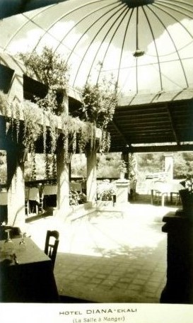Στο διαδίκτυο κυκλοφορεί και αυτή η κάρτα του ξενοδοχείου που με μπέρδεψε πολύ. Το κεντρικό κτίρο απεικονίζεται τριώροφο, αλλά το τηλέφωνο που αναγράφεται είναι πιο παλιό από αυτό της διαφημιστικής καταχώρισης της εποχής που το κτίριο ήταν διώροφο. Και τα παράθυρα του κτιρίου είναι πολύ διαφορετικά. Προσωπικά, κατέληξα στο συμπέρασμα ότι είναι μάλλον κάποιο “προσχέδιο” του ξενοδοχείου. Ακούω γνώμες.